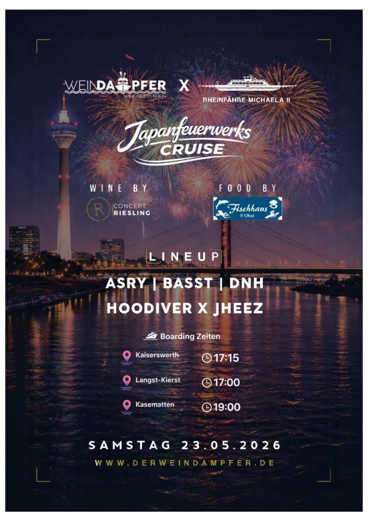 Tickets nur noch online, kein „all in“ mehr, dadurch werden die Tickets günstiger! Sie haben die Gelegenheit an Bord Getränke und versch. Fischbrötchen zu kaufen, gerne mit EC- Karte. (Eigene Getränke werden nicht akzeptiert!) Einstieg ist in Langst (17.00 Uhr), in Kaiserswerth (17.15 Uhr) und neu! Altstadt Kasematten (19.00 Uhr). Ankunft in Kaiserswerth/Langst wird gegen 0.15 Uhr sein.